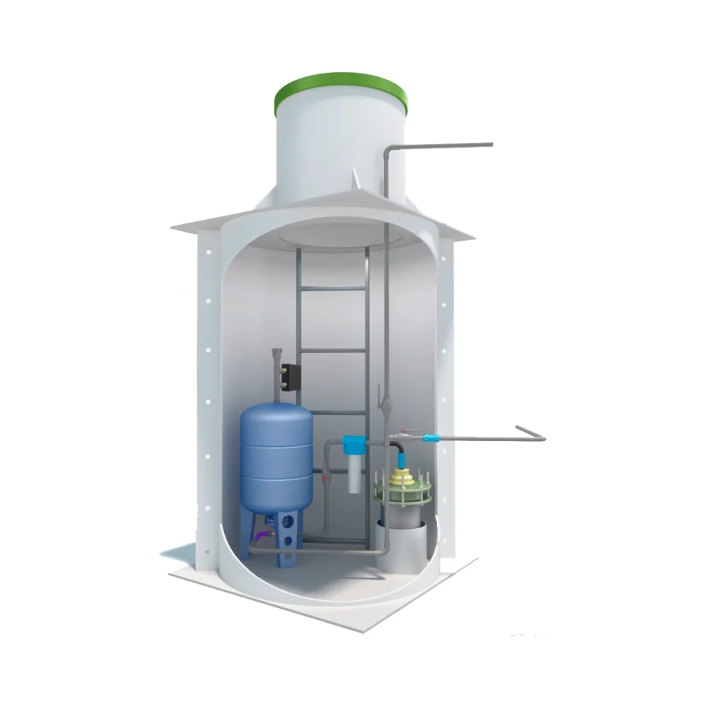 - Кессон с насосной станцией. Резервуар с системой водоподготовки для организации локального водоснабжения.
