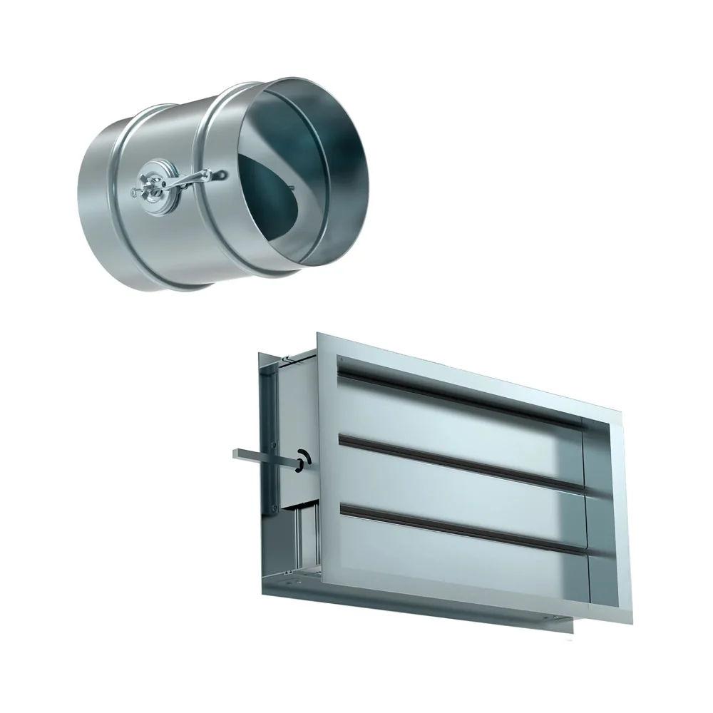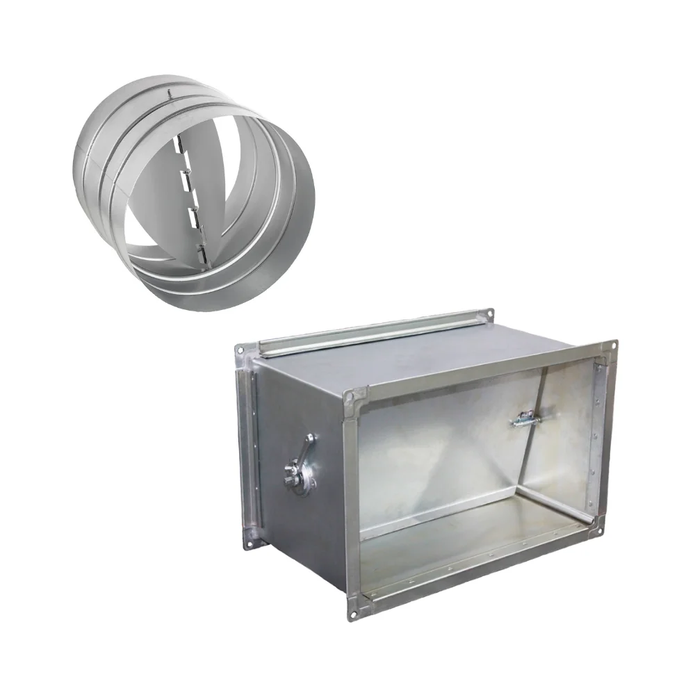 Производители изготавливают аксиальный или прямоугольный клапан ( затвор ) для воздуховода и вентиляции из оцинкованной стали, нержавеющей стали, алюминия или полимера. Оборудование может быть оснащено механическим или автоматическим устройством управления. Огнезащищённый и шумопоглощающий материал увеличивает качество эксплуатации изделия в экстремальных условиях.
