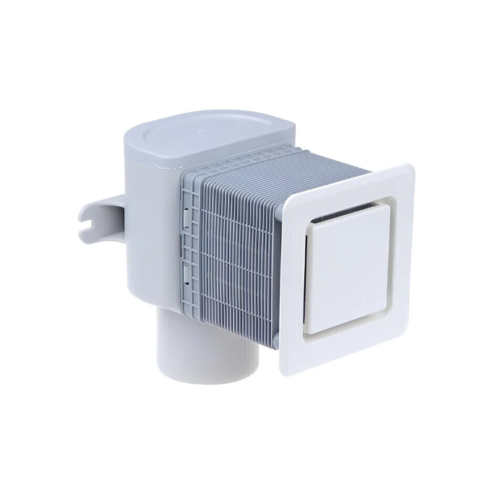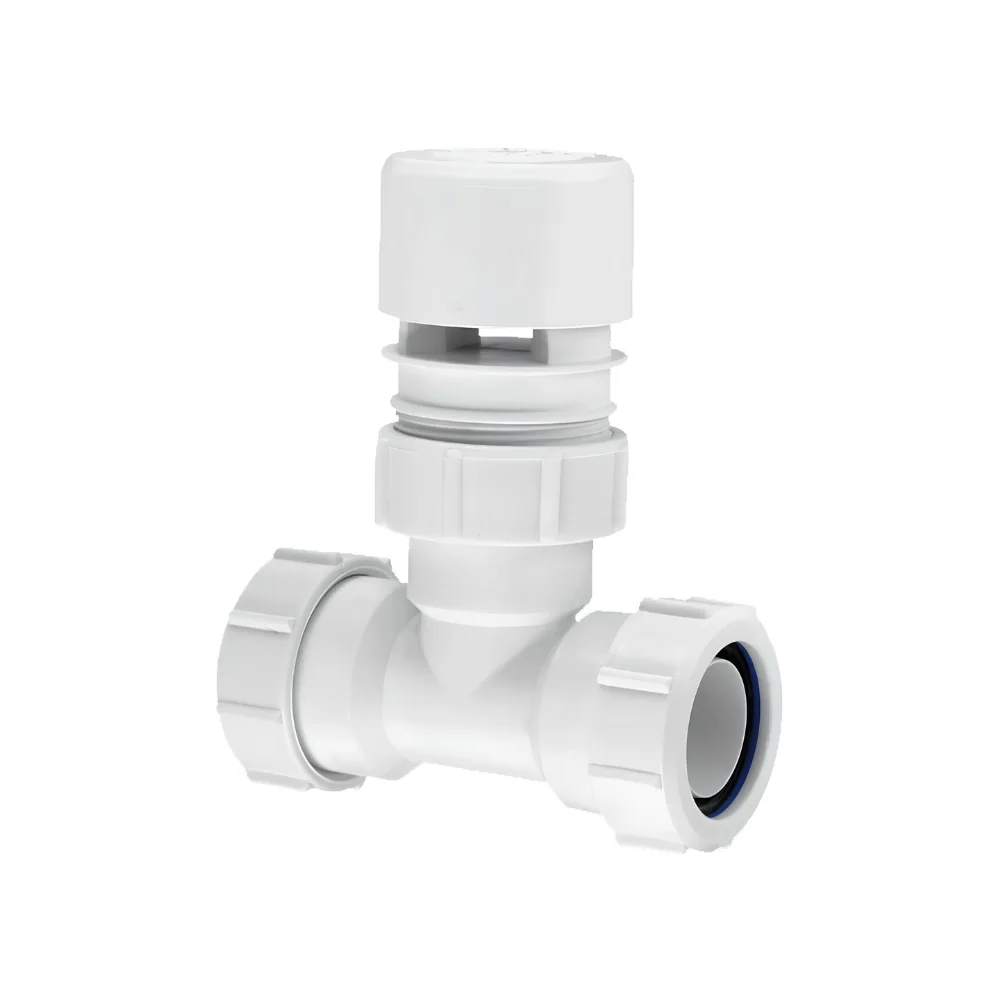 - Встраиваемый вакуумный клапан. Фановый аэратор с барьером из мембраны для скрытого применения на трубопроводе в полу или перекрытии.